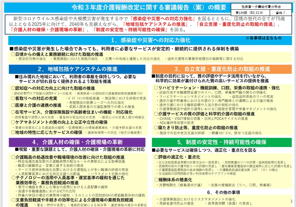 令和3年介護報酬改定へ向けての準備を!感染症・災害への対応力強化