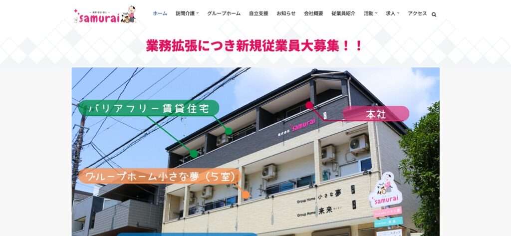 こちらは障害関連の事業で訪問介護とグループホームを行っています。男性スタッフが多く、アクティブに楽しみながらサービス提供している様子が感じられます。部活動などを行うなど、男性的な部分を意識し、待遇の部分でも力を入れていることがわかります。